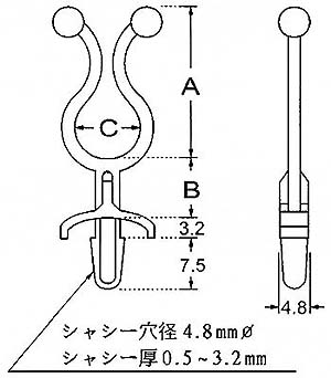 シヤシー取付部は矢じり形なのでワンタッチでロックできます。